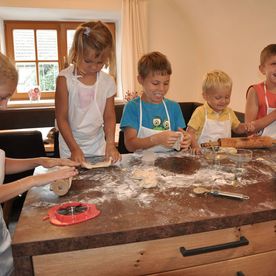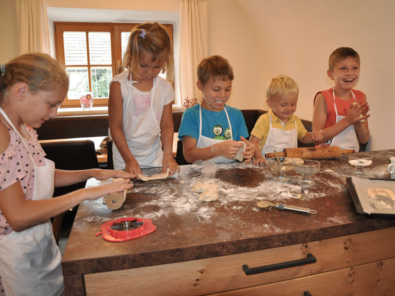 Gemeinsam wird je nach Alter der Kinder gekocht und gebacken (Weckerl, Pizza, Zopftiere, lustige Obst – und Gemüsetiere, Eis, Pudding, Weihnachtsbäckereien,…)