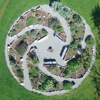 Den Auszeithof erweitert seit kurzem der neu angelegte, in Form einer Spirale gestaltete Kräutergarten. In dieser Spirale finden die einzelnen Pflanzen eine Zuordnung zu den 5 Elementen und zu den Chakren.